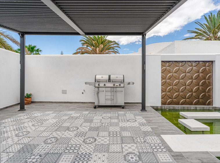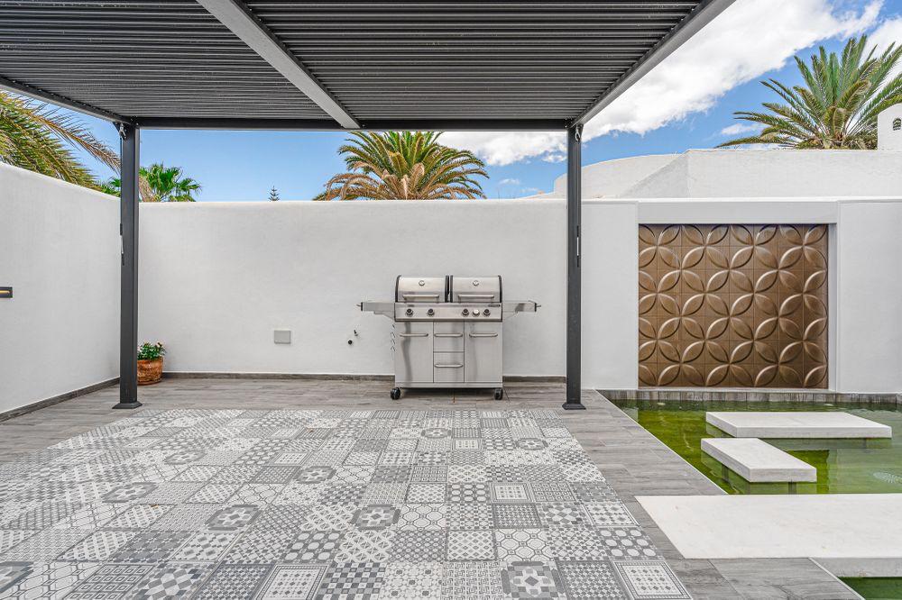 Outside: private driveway with electric gate leading to a 3 cars parking space. Floating water feature with water pump and filter. 4x3m aluminium bio-climatic pergola, outdoor dining and barbecue area, separate guest toilet, storage room and plenty of sunbathing space.
