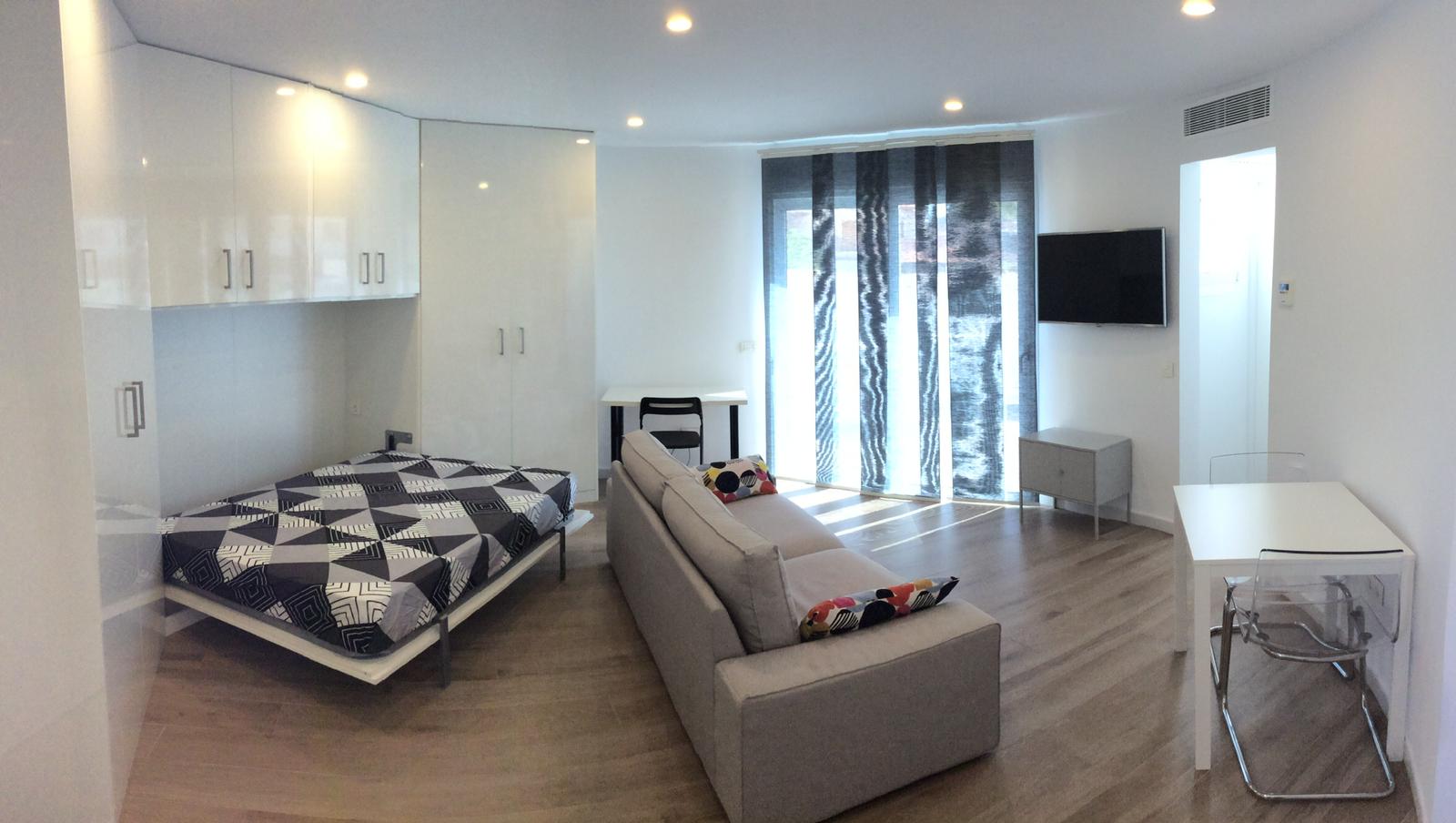 Upstairs: self contained studio apartment with independent access, fully fitted kitchen with dishwasher, lots of storage space and built in queen size bed hidden within the large floor to ceiling wardrobe. Full size bathroom with walk in shower and more storage space. The studio has separate air conditioning, water heater and washing machine. Direct access to the private 60m2 terrace with views to Teide.
